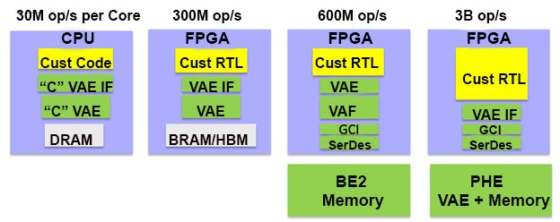 MoSys Virtual Accelerator Engines (VAE) are a range of implementations of the same accelerator function with a common RTL Interface (VAE IF), employing a common application program interface (API). THE VAE allows for platform solutions portability in order to achieve a range of performance scaling options up to 100x. Implementations can range from software on a CPU, to modules in FPGAs, to very high-performance requirementswhich combine an FPGA connected to MoSys silicon hardware accelerators with in-memory compute functions.